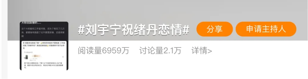 有人说这是祝绪丹的自导自演,因为爆料者自称是祝绪丹的大粉,网友还扒出祝绪丹“蹭流量”的旧闻,直指祝绪丹是为了蹭刘宇宁的热度。